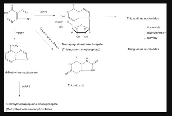 Thiopurine S-methyltransferase TPMT inactivates 6-mercaptopurine. Patients with azathioprine intolerance or nonresponse are candidates for treatment with 6-MP see Fig. Azathioprine and 6-mercaptopurine are thiopurines and azathioprine is an imidazolyl derivative of 6-mercaptopurine.