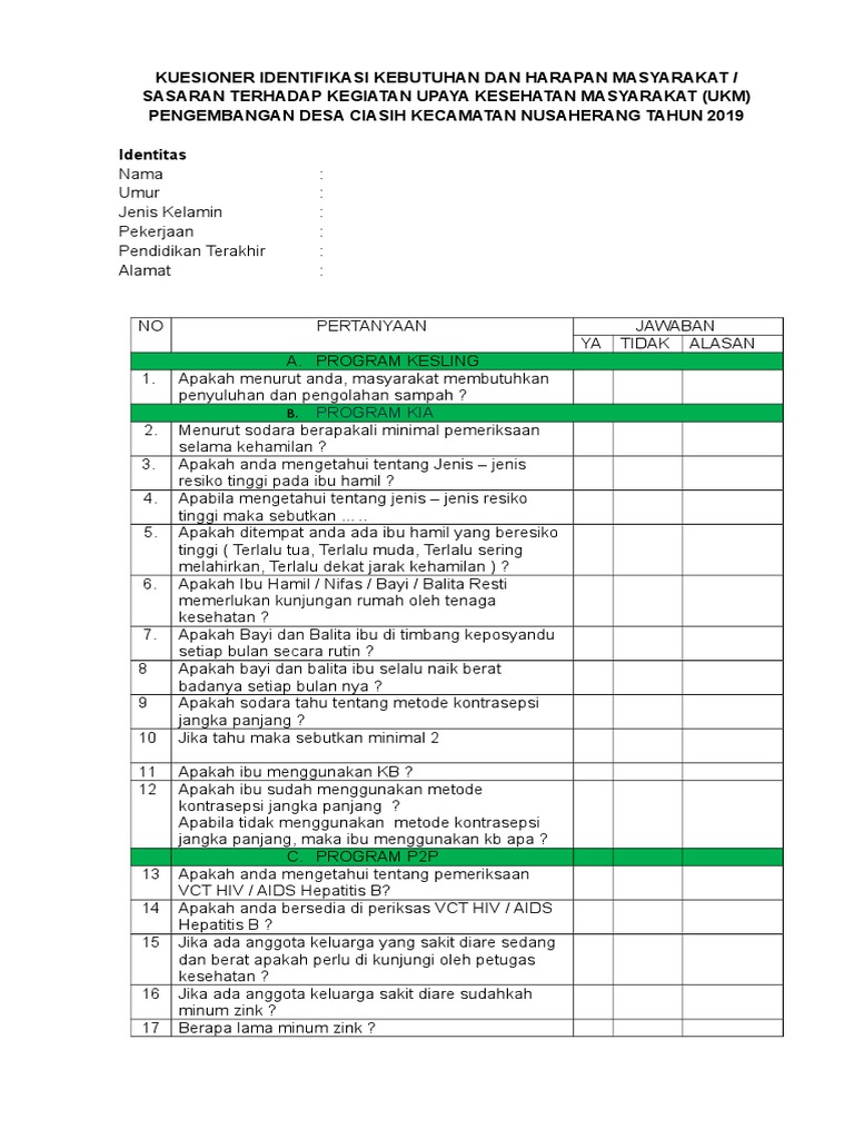 kuesioner kepuasan survei formulir skm diberikan