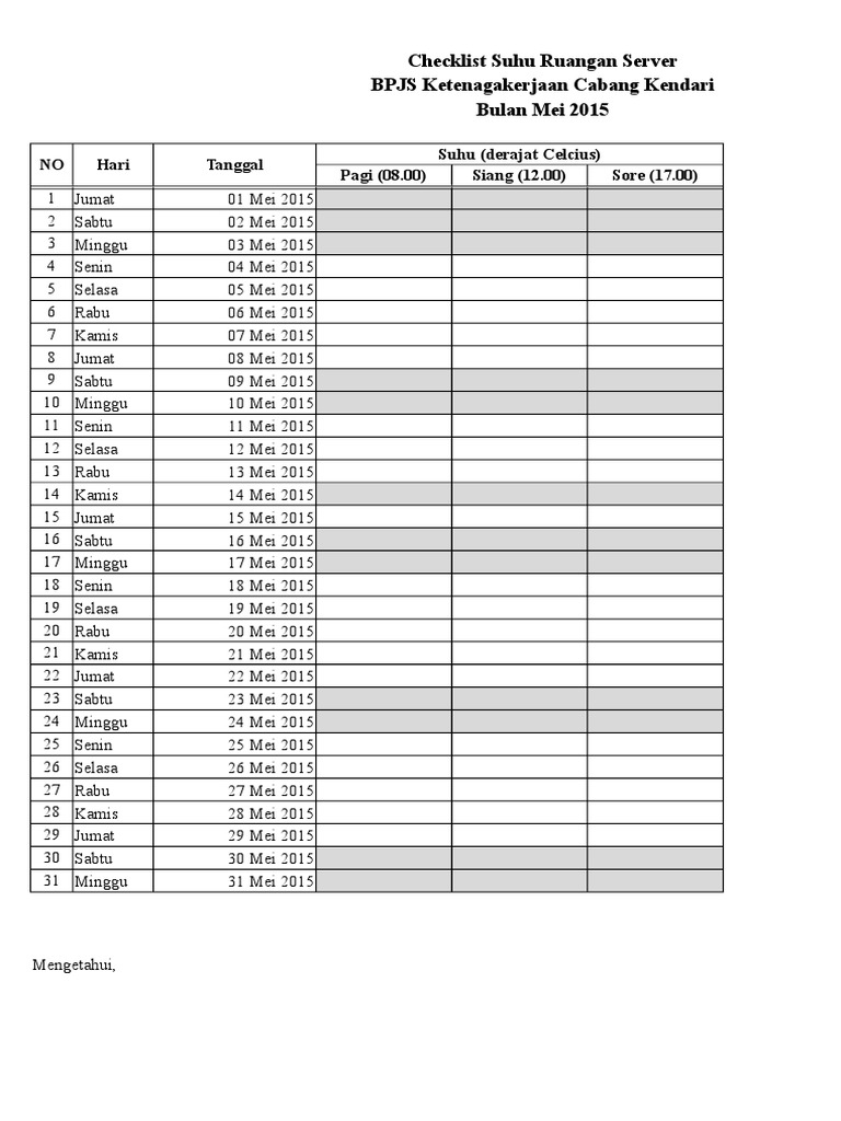 Checklist Suhu Ruangan Server
